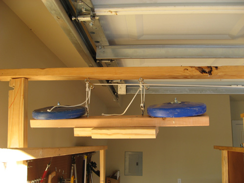 This now brings us to the item that got the most screams that night... the twenty-pound weight. When it was time for the elevator to move, I dropped this guy on the roof of the elevator. I dropped it a whole 3 inches but that was enough to jerk everything with a bang. I made sure that the weight hit a 2x4 brace, not the hardboard, used two ropes incase one broke and knotted the ropes that so even if it wanted to, the weight could not crash through the roof and bean someone. It is always important to over-engineer for safety. Let me say that again... OVER engineer for safety. I made that sucker strong.