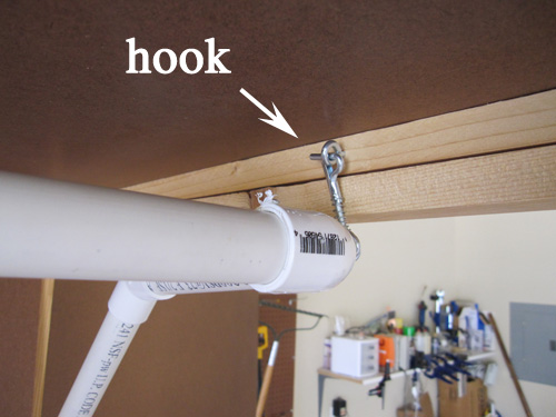 One thing I learned is that no matter how secure this structure may seem, it will still come apart unless you screw the pipes into the connectors. Fortunately, this is easy to do (it took me 5 minutes on Halloween in the middle of my haunting). Use #6 screws wood screws. They are sharp and don't need tapping.