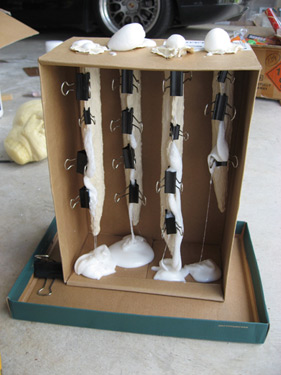 Now it is time to yell at you all. I have had several haunters ask for my help to duplicate this project for their haunt, which I am glad to do. However, there turns out to be a lot of you who want to skip this step and just use wooden spikes! "I will just be careful" you tell me. NO! DON'T BE CAREFUL, BE CERTAIN! If you can't make foam spikes, make hollow paper ones. Or cut up a foam pillow. Do something other than tangle real spikes over the kids' heads!